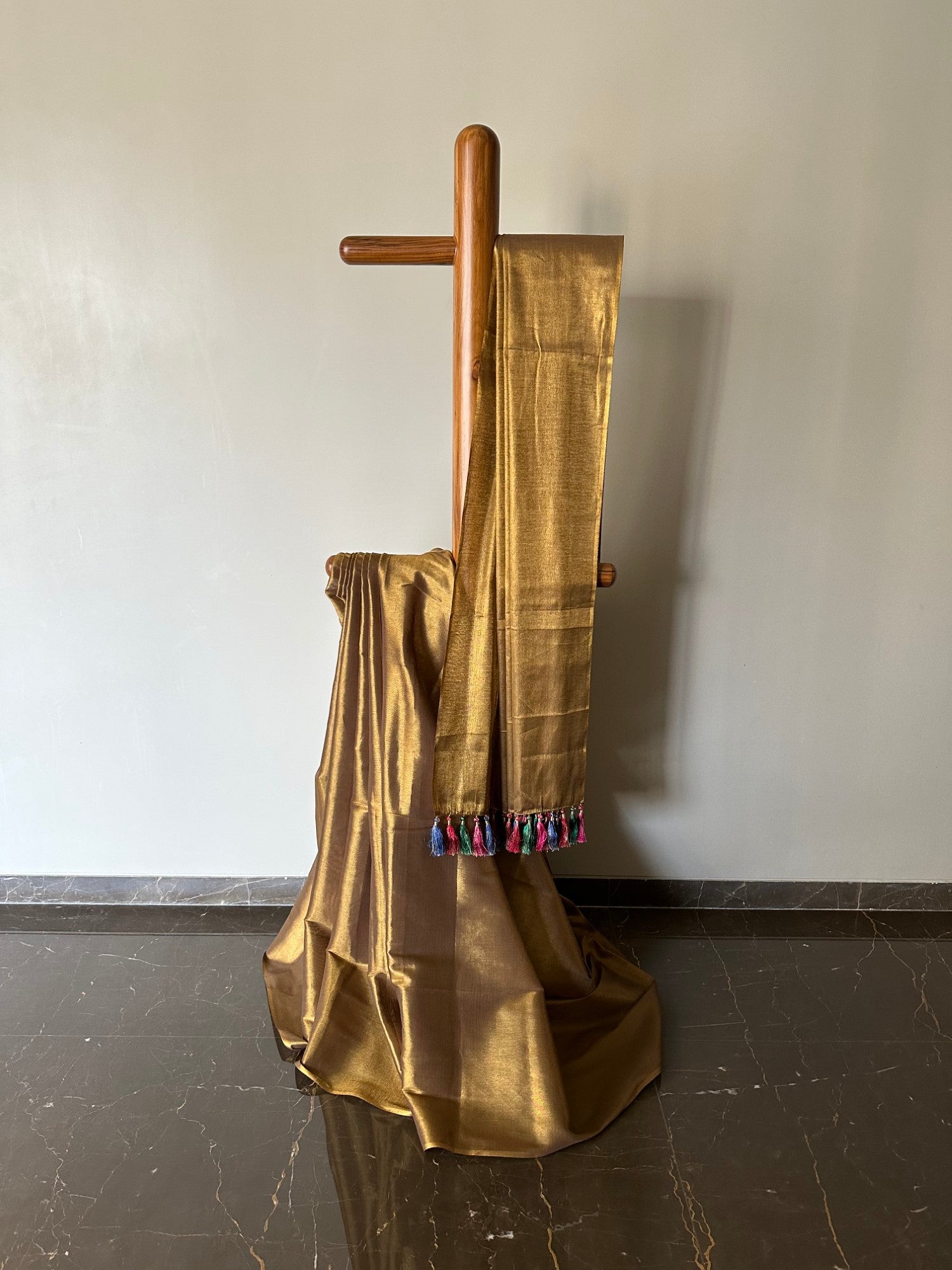 Handloom Tissue Saree with Multi Colored Tassels